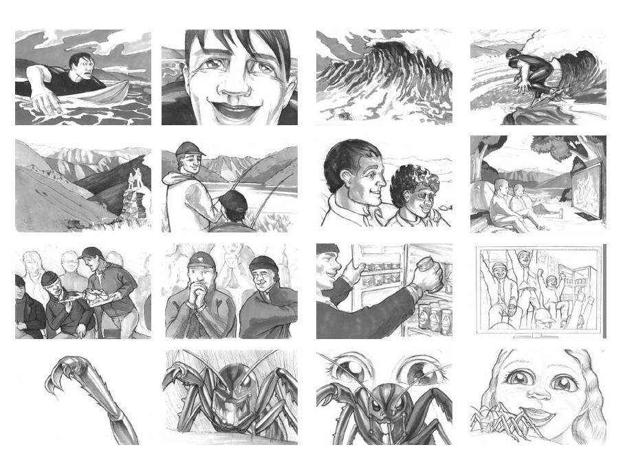 Storyboard illustration for Critical Mass Advertising for LG Pitch. Illustrated as per ideas supplied in the written brief